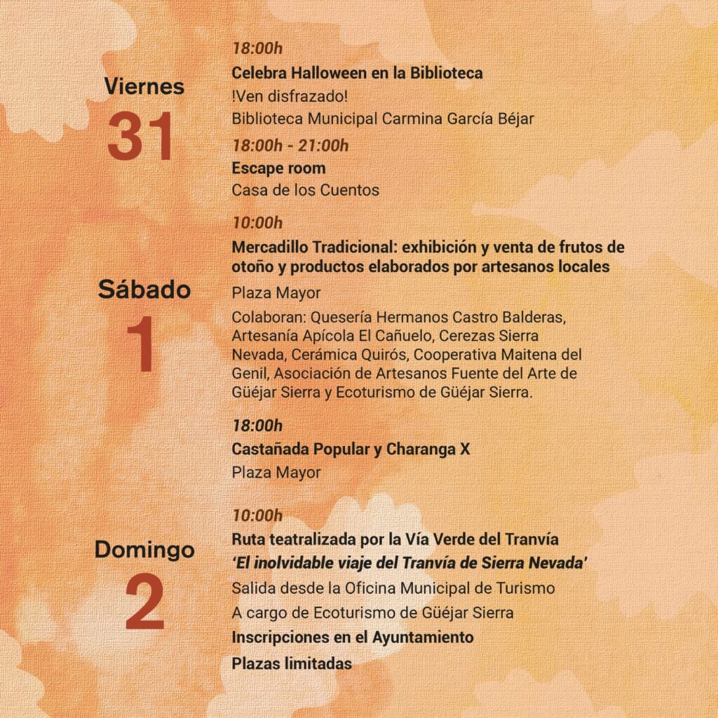 La castañada es, sin duda, la actividad estrella del Festival Joven de Otoño de Güéjar Sierra que, en esta XIII edición, se celebrará el próximo sábado 1 de noviembre, a partir de las 18:00 horas, fin de semana de Todos los Santos. “La idea es que suponga un aliciente más para venir a pasar esos días a Güéjar Sierra, con todo lo que eso supone para la economía local”, señala el primer edil.