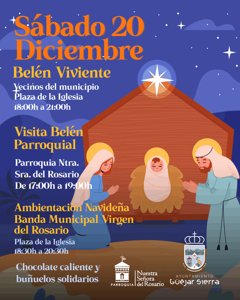 Tras el éxito del Belén Viviente del año pasado, este próximo sábado 20 de diciembre repetimos. Los vecinos de Güéjar Sierra volverán a representar la estampa más representativa de la Navidad: el portal de Belén, así como todos los personajes y oficios relacionados.