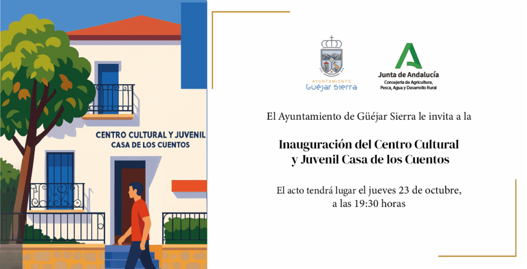 🏡👏🏻El Ayuntamiento de Güéjar Sierra inaugura el recién reformado Centro Cultural y Juvenil Casa de los Cuentos este jueves 23 de octubre, a las 19:30 horas.