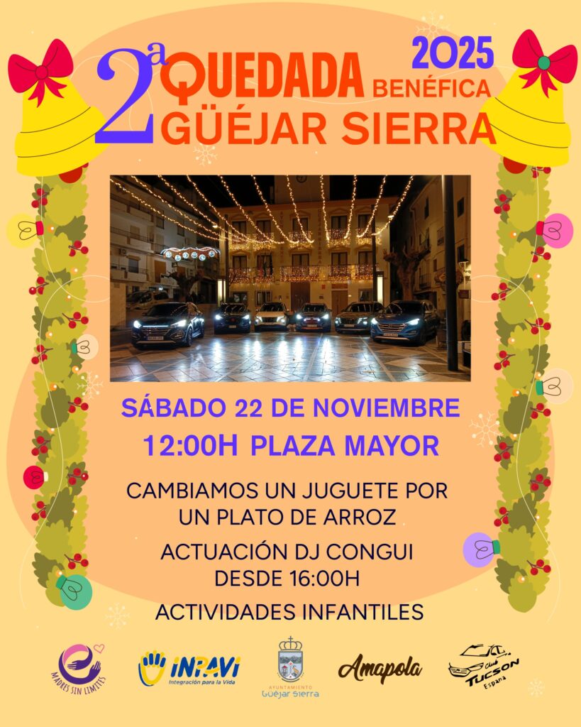 🎁👏🏻Empieza la cuenta atrás para la segunda Quedada benéfica de Güéjar Sierra. Cambiamos un juguete por un plato de arroz.