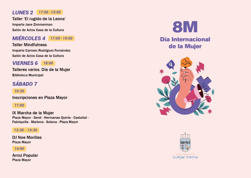 El Ayuntamiento anima a la ciudadanía a sumarse a las actividades y a participar en la marcha, destacando que el 8M en Güéjar Sierra se plantea como una jornada de compromiso y apoyo mutuo.